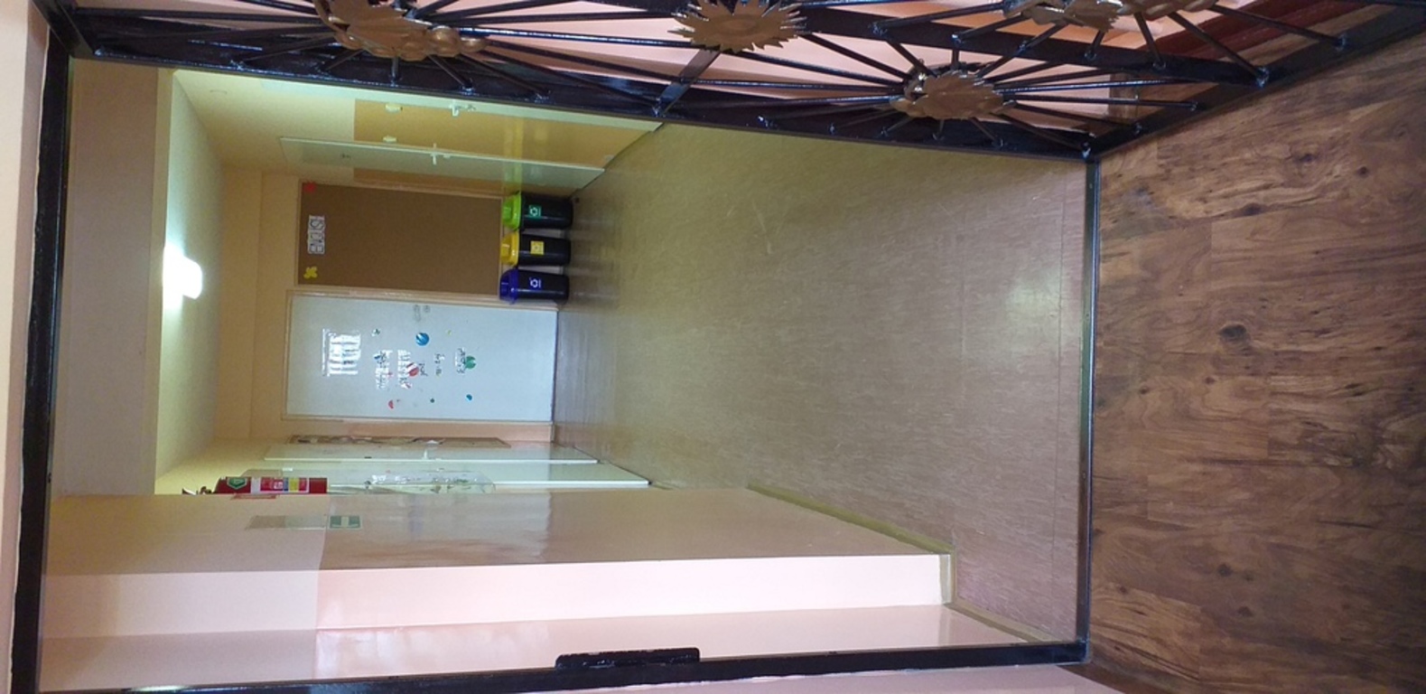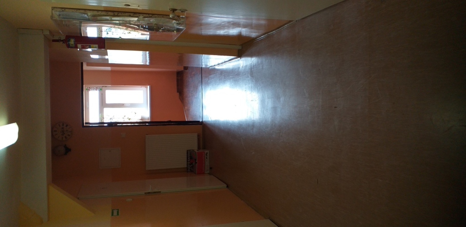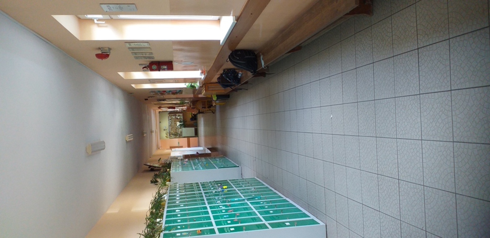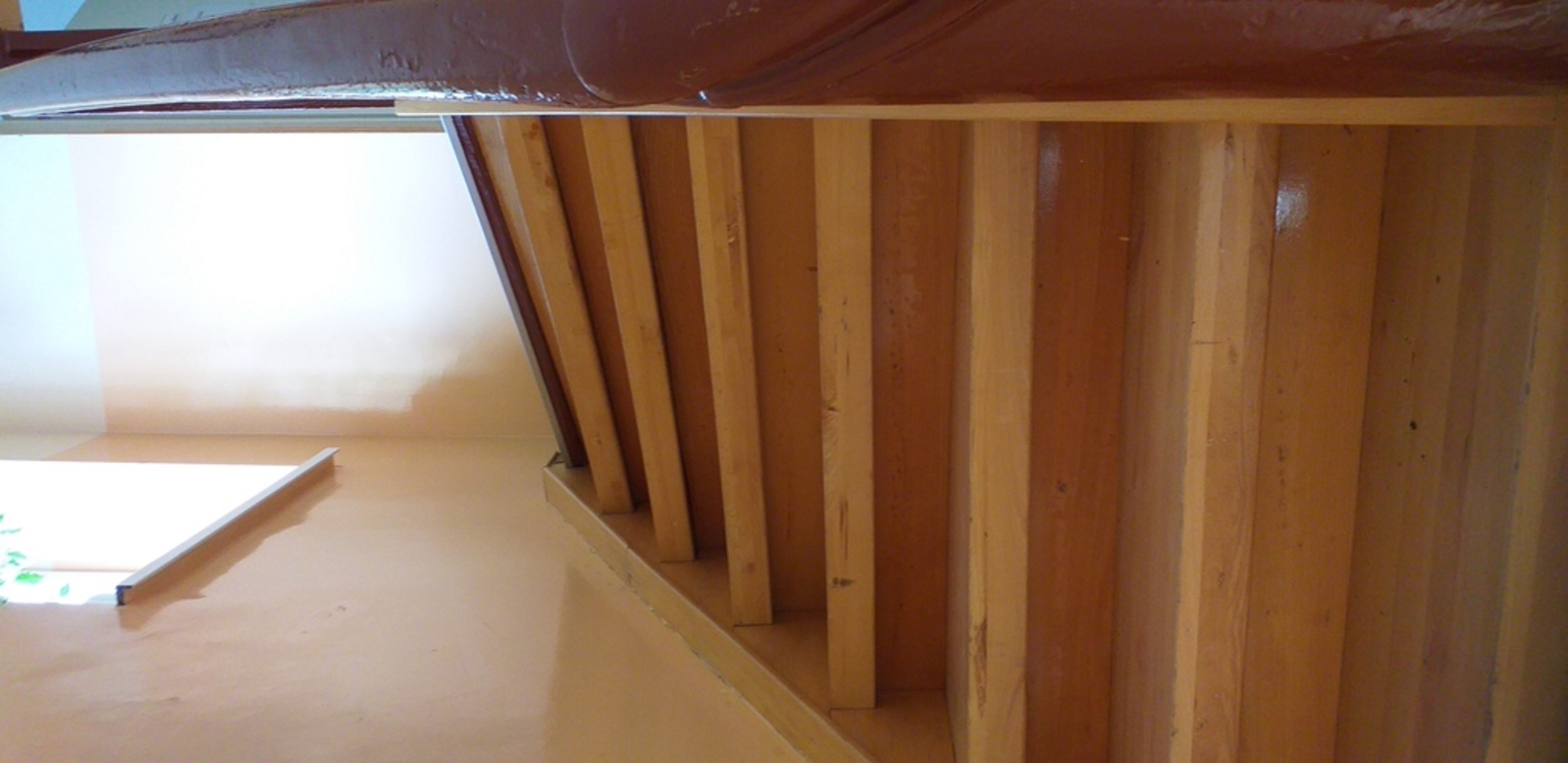 Pochylnia dostosowana dla osób niepełnosprawnych. Znajduje się przy głównym wejściu z posadzką pokrytą płytkami ceramicznymi oraz drewnianymi poręczami po obu jej stronach.